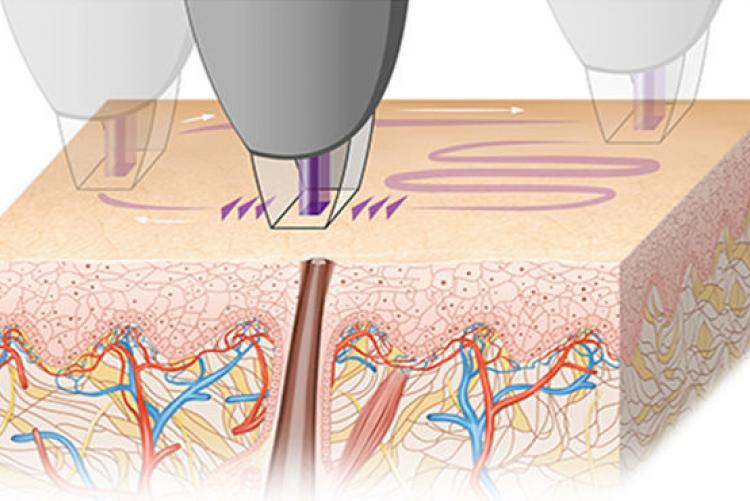 Un pulso de alta frecuencia minimiza la exposición de la piel al láser para un...